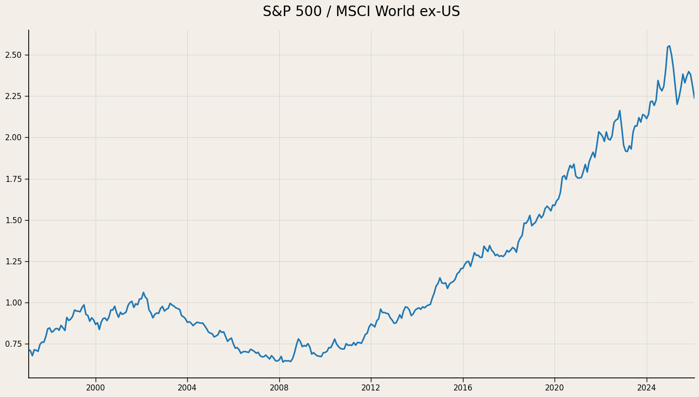 The S&P 500 illustrates this clearly. Broad, low-cost S&P 500 replication vehicles reached scale well before comparable MSCI World trackers. Early benchmark flows therefore concentrated in the S&P 500. As US equities subsequently outperformed, their weight within the MSCI World Index increased mechanically. A larger US weight within global indices in turn directed a greater share of passive allocation back toward US equities. First-mover advantage and relative performance reinforced one another.