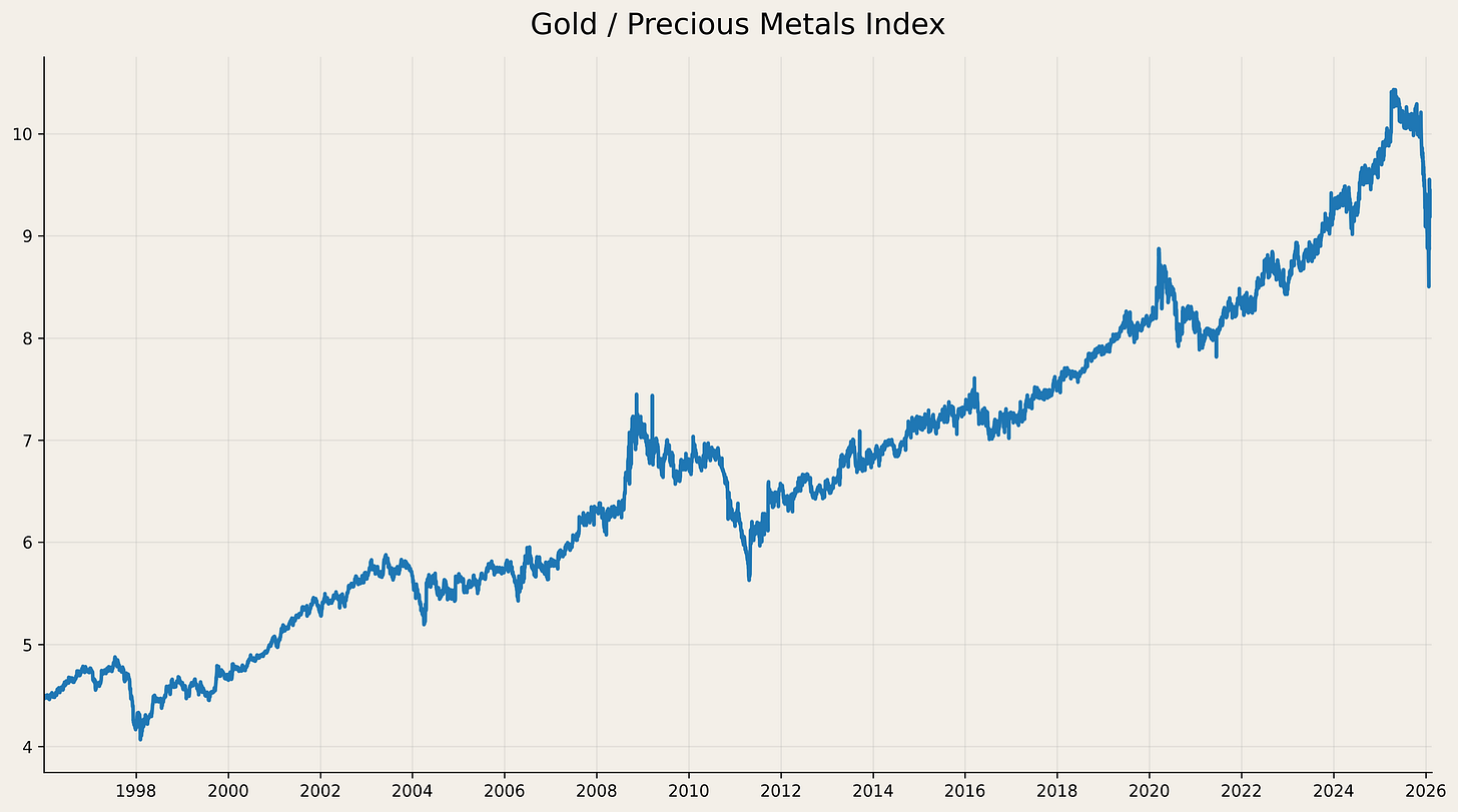 Interesting chart on gold… wonder if it’ll keep outperforming other precious metals like this or some point revert